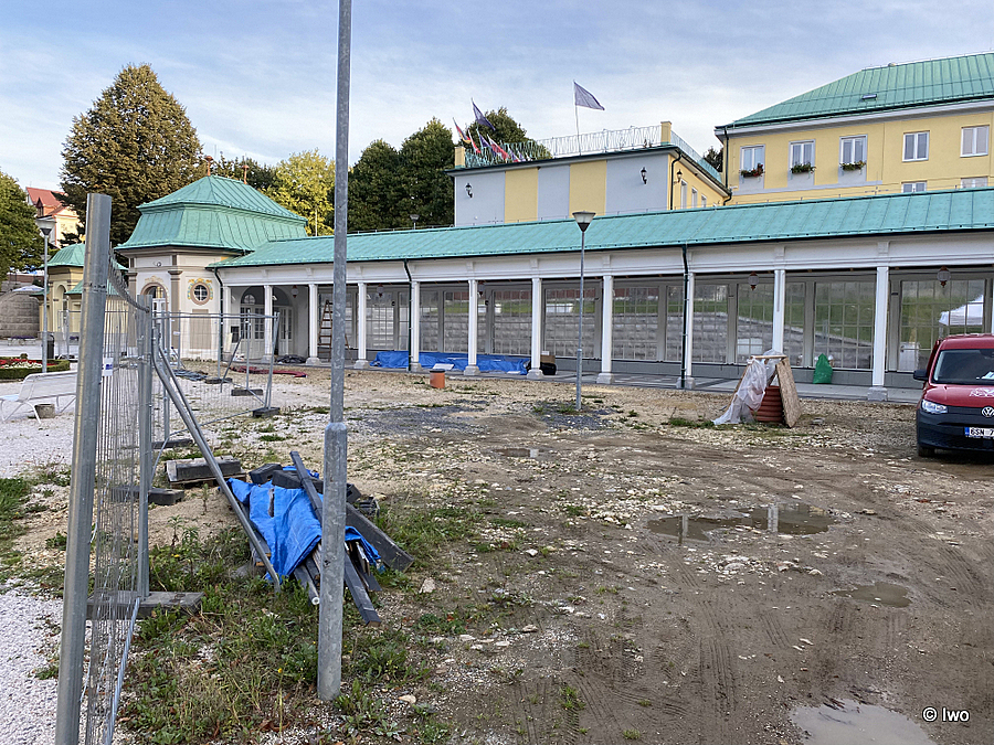 V roce 2023 začala rekonstrukce (no, asi se nejedná o vhodný termín – „průzkum odhalil, že je kolonáda v mnohem horším stavu, než se původně předpokládalo, proto stavbaři původní kolonádu zbourají a na jejím místě vyroste nová“) a překvapivě šla dolů nejen kolonáda, ale i tento gloriet. Zatímco kolonáda je v září 2025 již komplet znovupostavená, po glorietu ani stopy…
