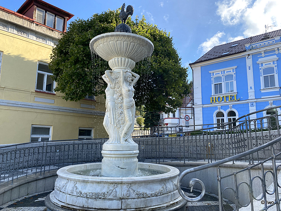 - Fontána před kolonádou Rudolfova a Karolinina pramene v Mariánských Lázních