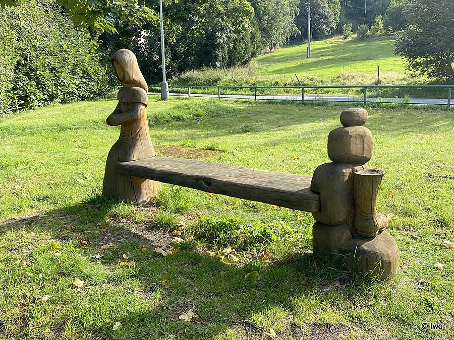 Napraveno v roce 2023 – vyměněná je jak socha, tak lavička. Nabízí se otázka, na jak je to dlouho – na některých „nových“ sochách už zub času řádně zapracoval.