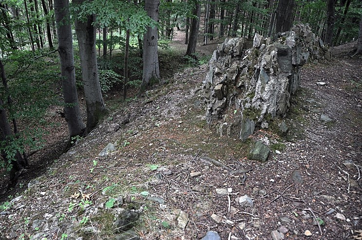 Dnes tady toho k vidění moc nezůstalo. Pokud znáte Krásný Buk, stačí ho víceméně vynásobit dvěma… Terénní dispozice je velmi podobná – pahorek za valy a příkopy, na něm pár kamenných zbytků a všude jen vzrostlé stromy, zabraňující výhledu a zakrývající poslední zbytky, které by mohly poskytnout představu, jak to tu asi mohlo vypadat. Nechme tedy promluvit opět odborné prameny: