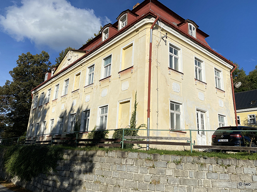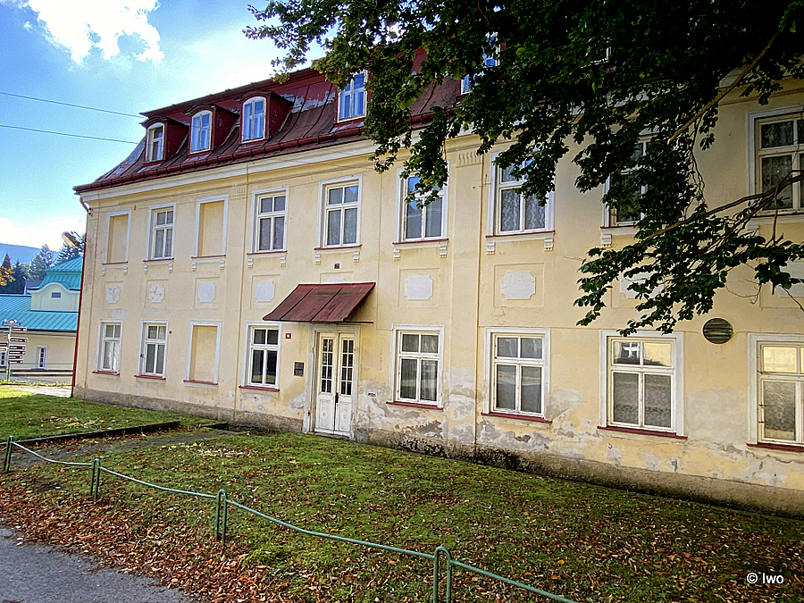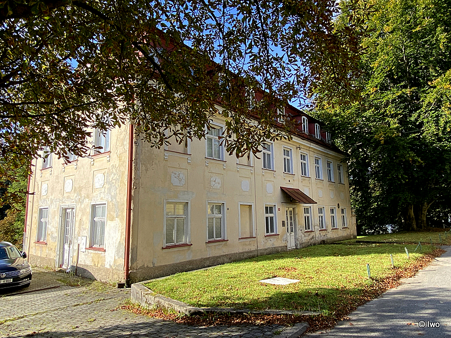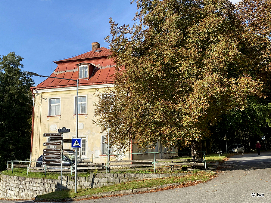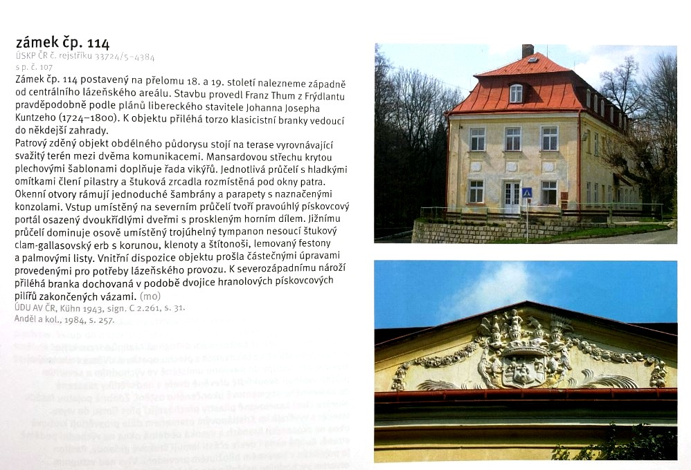 Budova, lišící se od těch ostatních lázeňských vlastně velmi málo, stojí na opačné straně silnice na rozcestí – jedna odbočka směr Lužec pod Smrkem, druhá kolem hotelu Lesní zátiší. Původně se skutečně jednalo o šlechtické sídlo, stavba ale byla časem adaptována pro potřeby lázní. V obvyklých encyklopediích o stavbě ani slovo.