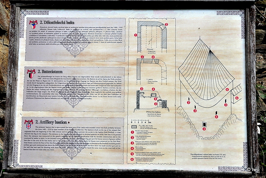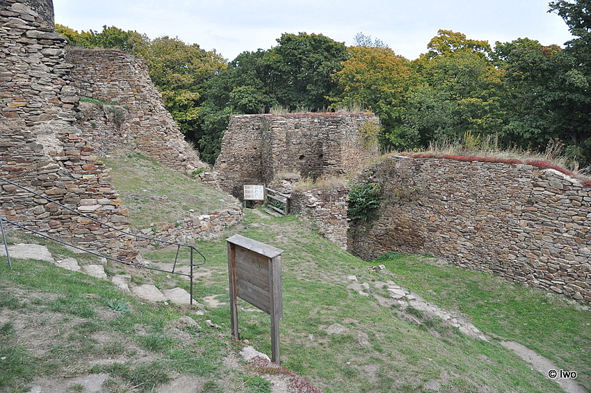 Autem zastavit můžete buď v obci a udělat těch pár kroků po žluté značce pěšky, nebo zajet až přímo před hrad na parkoviště, kde na konci sezóny bylo míst volných dost a dost. Pak už stačí projít bránou, pak přes most dovnitř, koupit si lístek a bloumat a bloumat. Za historií, za poučením, ba i za rozhledy (věž má výšku 25 metrů a vede na ni 116 schodů). Tak dokonale popsaný a přímo na místě zdokumentovaný hrad jsem asi ještě neviděl, lze si tak velmi dobře vytvořit obrázek o tom, jak to tu asi vypadalo a fungovalo. A až vás to unaví, můžete sednout ve zdejší stylové restauraci naproti pokladně.