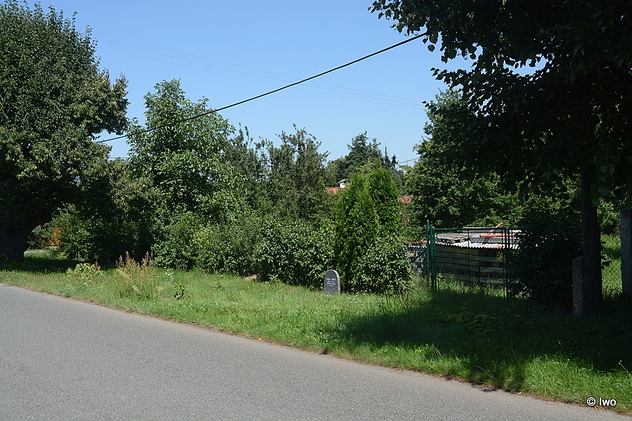 V trávě takřka zaniká malý pomníček, tvořený základovou deskou obdélného tvaru s vybráním pro květiny, na níž v zadní části stojí deska hrubě upravená do oblouku, na jejíž čelní leštěné straně je nápis.