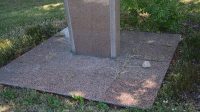 Za kostkami vydlážděným půlkruhem, ohraničeným odlišnými kostkami větších rozměrů, stojí na krajích dva nízké hladké kvádry se středovým otvorem – pravděpodobně v nich byly umístěny nějaké dodatečně odstraněné artefakty. V ose je pak vysoký kamenný monolit ve čtverci dlaždic stejného materiálu (narůžovělá žula?). Monolit se směrem vzhůru mírně rozšiřuje, má okosené rohy, na čelní straně nápis azbukou a na vrcholu pěticípou hvězdu.