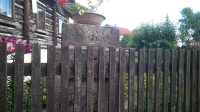 Za hustým plaňkovým plotem na ohradní zdi, tvořící zahradní terasu u domu čp. 39 v Brložci, se ukrývá torzo kříže.