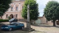 Na skloněné vydlážděné ploše náměstí Pod Lipami ve Zlonicích stojí boží muka.