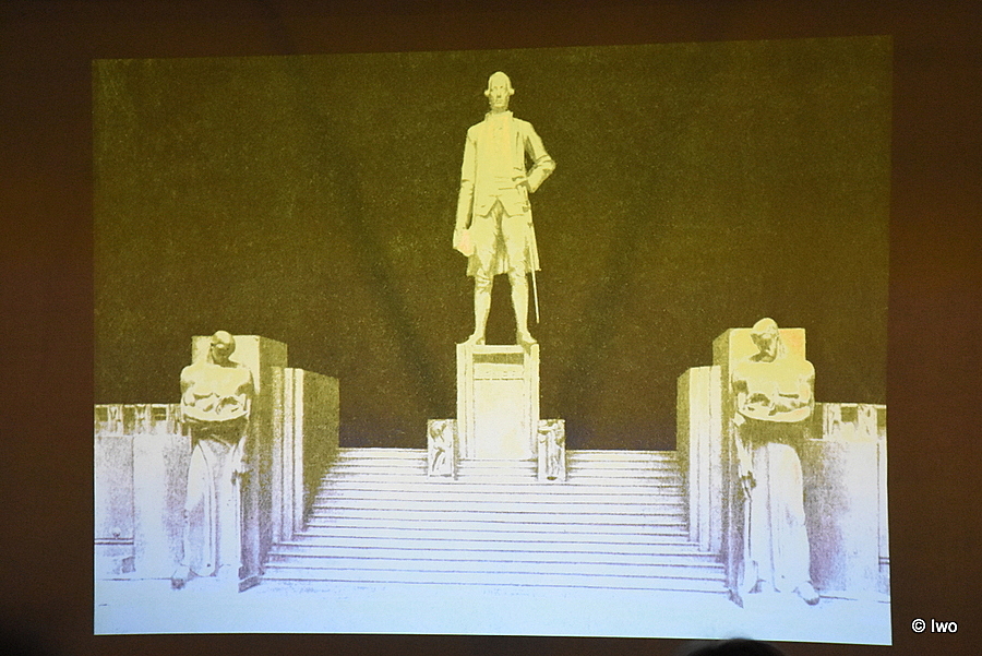 Poznámka: Původně pomník sloužil jako podstavec pro sochu císaře Josefa II. Profesor vídeňské Umělecko-průmyslové školy Franz Metzner vytvořil pětimetrovou sochu císaře, která byla, společně se schodištěm obklopeném figurálně zdobenou opěrnou zdí, odhalena v září 1913. Po vzniku samostatného Československa byla socha císaře, na žádost českého obyvatelstva, dne 10. listopadu 1920 odstraněna.