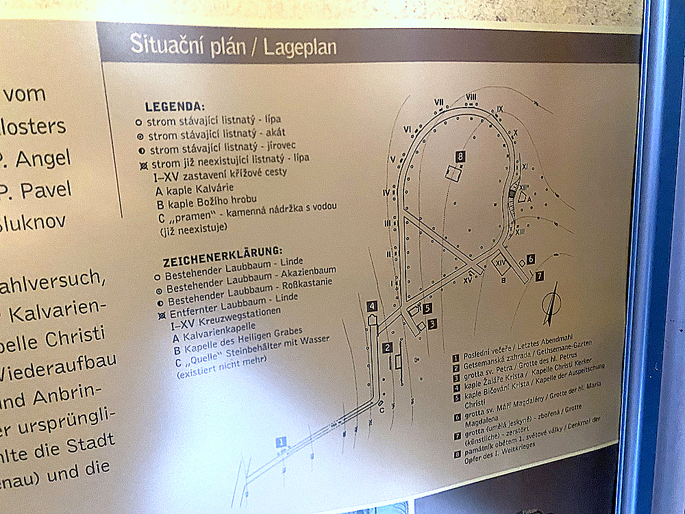 Podle brožurky novodobý konec nastal v roce 2003, kdy po pokusu o krádež byly všechny sloupky zastavení demontovány a Městem Šluknov uloženy kdesi mimo areál. Tak nějak to tu díky tomu na mě působilo stejně jako křížové cesty, které jsou zpustlé desítky let… Rozeznat, která kaplička či grotta je která, či kde mohla být Getsemanská zahrada, to jaksi bez podrobných historických pramenů není možné. A údajně obnovenou studánku se mi podařilo přehlédnout úplně.