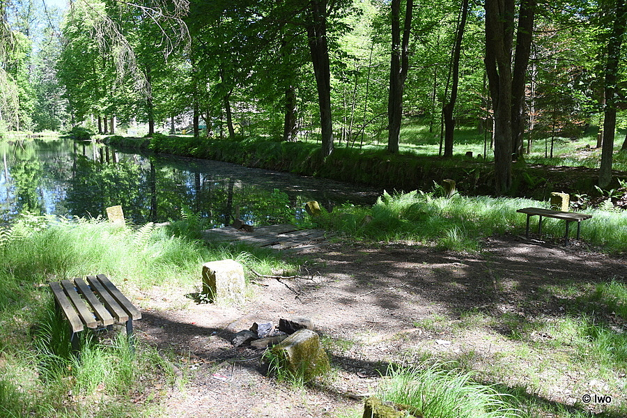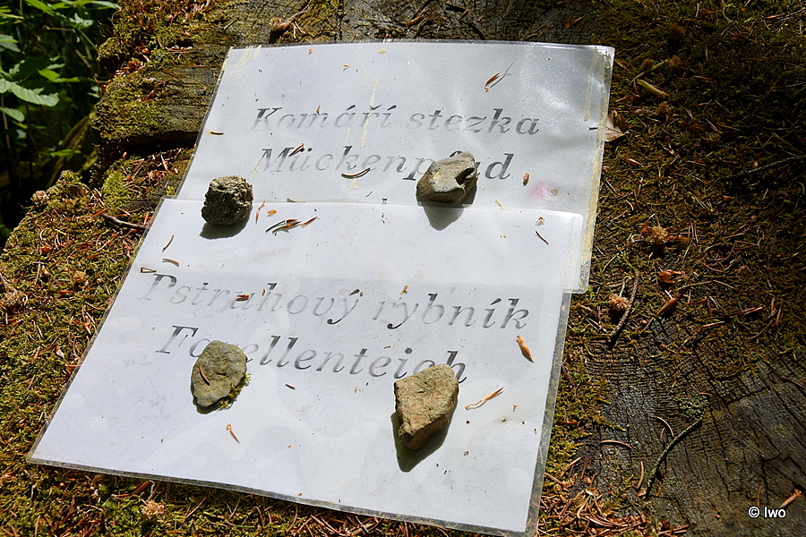 Mnohem horší je to na opačnou stranu. Altány, dílny, pomník, hřiště, hostinec, prodejní stánky, sáňkařské dráha? Ani náhodou, vůbec nic v terénu nenapovídá, kde co mohlo být…