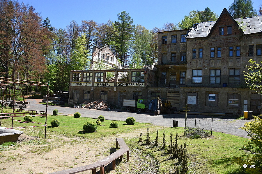 Jsem tu náplava vlastně jen krátkou dobu, takže slavná léta mnoha míst jsem nezažil a nedovedu si je ani představit. Karlovo údolí už znám jen jako žalostnou ruinu. A je jedním z mála míst, kde na mne padá opravdu beznaděj a totální pocit zmaru. Procházím se kdysi vyhlášeným areálem s mapkou v ruce a marně se snažím někde chytit, absolutní ztráta orientace – stojí (zatím ještě) jen hlavní budova. Jakž takž se dá rozpoznat lesní část vpravo od budovy – rybníky ještě mají svůj tvar, cestičky jsou jakž takž znatelné, uprostřed lesa obrovské „stromy“ zapomenutých rododendronů… Zbytek půjčovny lodiček je poznat jen díky dobovým fotkám. Že za pstruhovým rybníkem bývalo lesní divadlo se zdá k nevíře. Ve vymletém korytě se bezmocně povalují zbytky rour, jimiž byl zřejmě sveden tok pod hledištěm, z toho, co fotky ukazují v místě jeviště, je v zemi jen pár cihel..