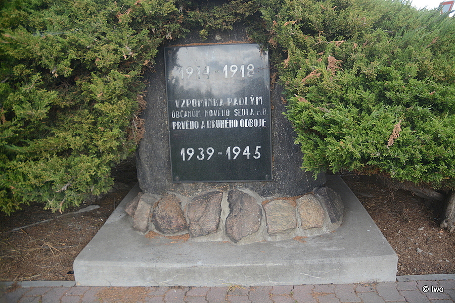 Oběti Velké války z Nového Sedla připomínal nejprve náhrobek s kamenným křížem a dvojicí truchlících cherubínů zřízený Josefem a Annou Wettovými na místním hřbitově na památku jejich syna Josefa, který padl „na poli cti a slávy“ 28. listopadu 1914 v Srbsku. Později, v roce 1928, byl na popud německého sboru dobrovolných hasičů a za podpory místních obyvatel postaven za částku 4 000 Kč nový pomník zhotovený kameníkem Franzem Richterem z Jirkova. Jeho slavnostní odhalení se uskutečnilo v neděli 10. června 1928 za účasti farářů Dr. Karla Hubatschka a Johanna Herknera, bývalého polního kuráta 92. pěšího pluku, kteří pomník společně vysvětili.