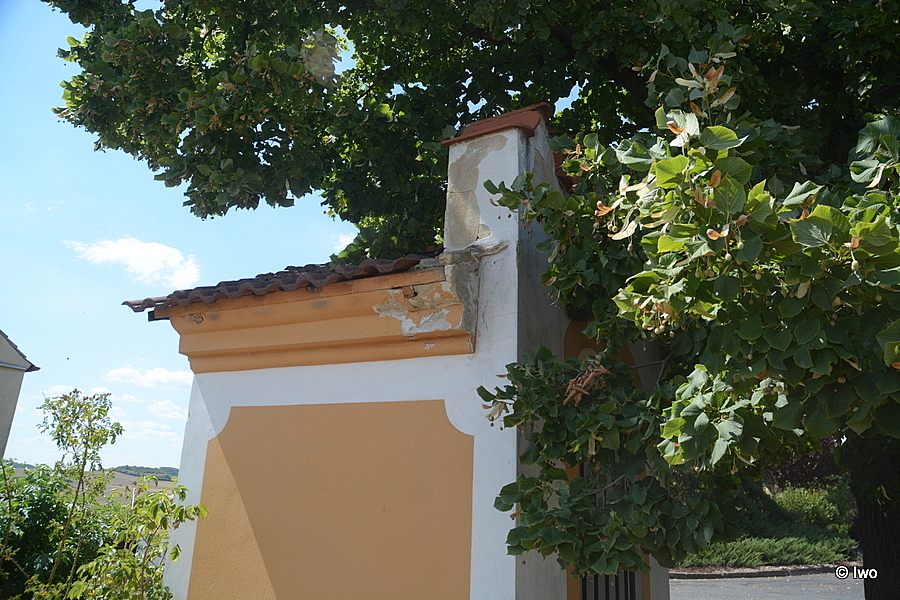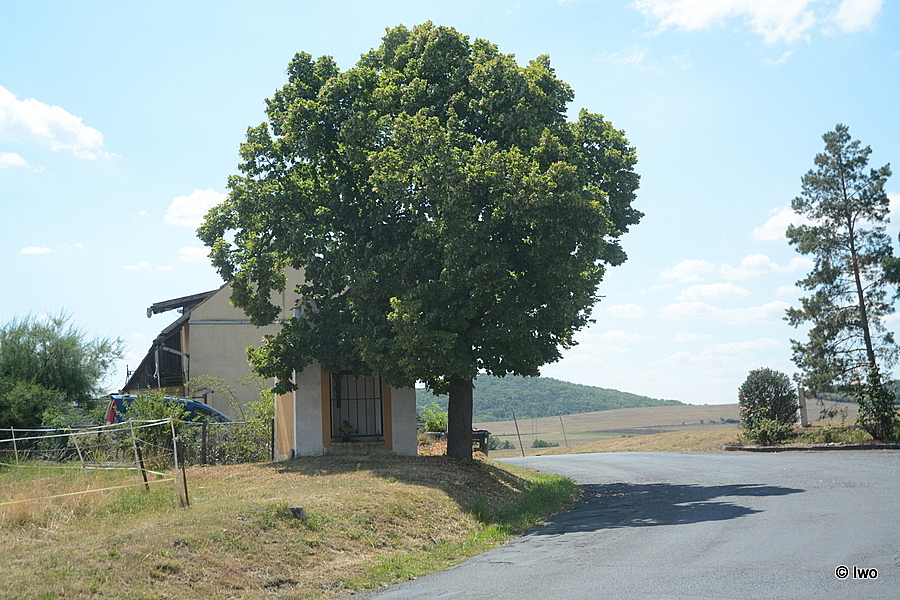 Opravená kaple na vyvýšené krajnici nad rozcestím zaniká zakryta korunou vzrostlé lípy je na rozdíl od své nápadnější kolegyně v centru v evidenci webu Poškozených a zničených kostelů, kaplí a synagog, i když jen s poznámkou, že se dočkala opravy. To je ale bohužel vše, co se o kapli dá najít…