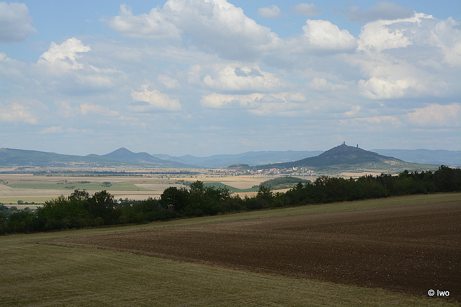 Výhled: především České Středohoří s dominující královnou Milešovkou, Lovošem, hradem Hazmburk, Ranou, Oblíkem a spoustu dalších vrcholů, dále Krušné hory, Klínovec, Doupovské hory, Louny, Peruc