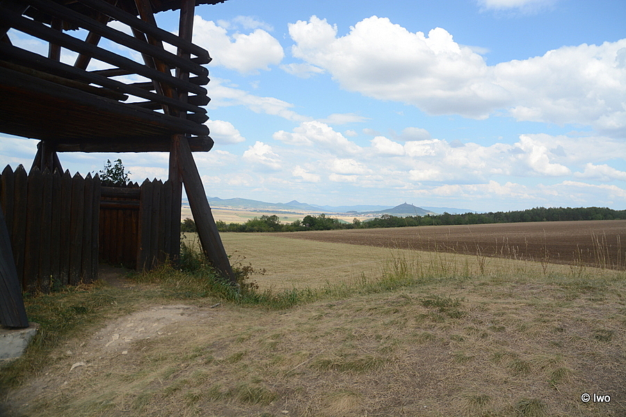 Zvolilo se postavení malé rozhledny v nejvyšším bodě valů, s pěkným výhledem na České středohoří. Použití materiálů a technologií, o kterých píše doktor Smrž, nebylo zcela dodrženo. Od keltských zvyků jsem se zřejmě odchýlil už tím, že jsem si udělal náčrt na něco, čemu říkáme papír a na rozdíl od Keltů jsme přinesli práci na stavební úřad. Jediné, co jsme dodrželi je, že na stavbu nebyly použity dnešní normy, hygienické ani požární předpisy, ale dochované keltské.