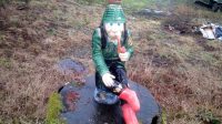 Klasicky pojatý pestře nabarvený vodník pokuřující dýmku kouká na vodní hladinu. Panorama map.cz z roku 2016 a 2021 žádnou sochu neukazuje, vodník je tedy zřejmě usazen někdy po.