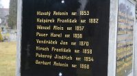 Jména z desek na středovém pomníku – národnost odlišena na deskách zkratkou nar. / geb.