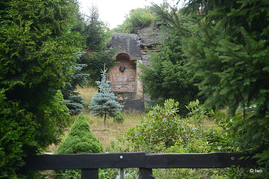 Výklenek je vytesán v osamělé skalce, stojící na strmém zalesněném svahu za kostelem. V uměle otesaném pískovcovém skalním bloku je velký hluboký výklenek po svatém obrazu, pod ním je malý výklenek, v němž byla zřejmě soška.