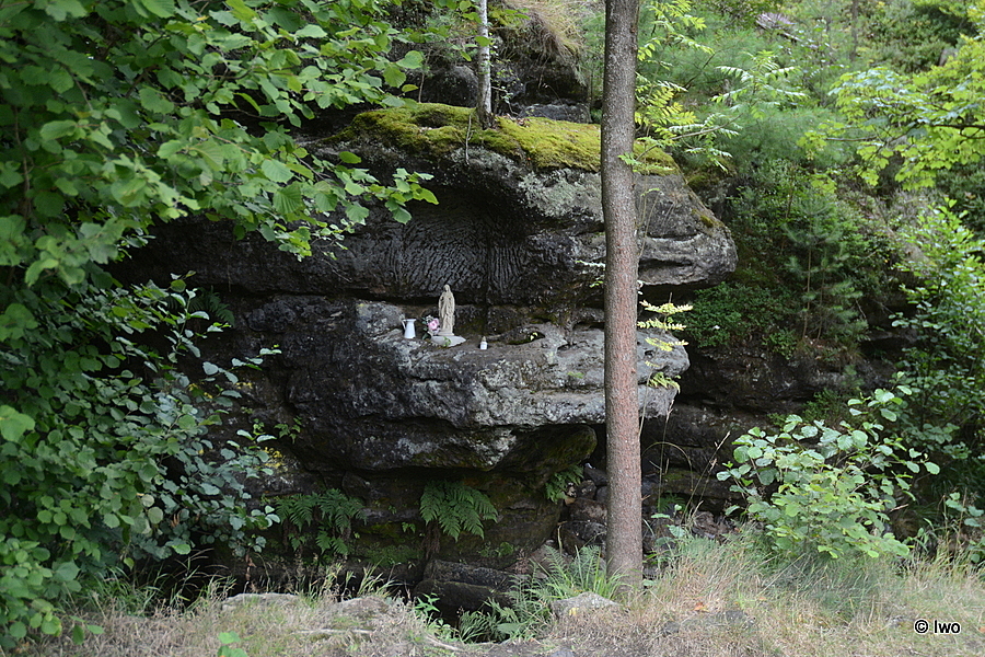 V pískovcových skalkách nad Hamerským potokem v Antonínově údolí u Mařenic je u silnice vysekána výklenková kaple.