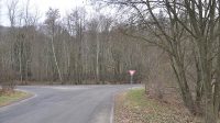 Kousek za Hruškovou se silnička mění v lesní cestu, po níž se za klesající teploty a přibývající námrazy dostávám k úžasné a překvapivé zřícenině kostela sv. Mikuláše. Cesta začíná klouzat a stoupat. Na vrchol kopce vede ze žluté odbočka, hlavní směr je přes Třídomí a Komáří rybníky do Krásna.