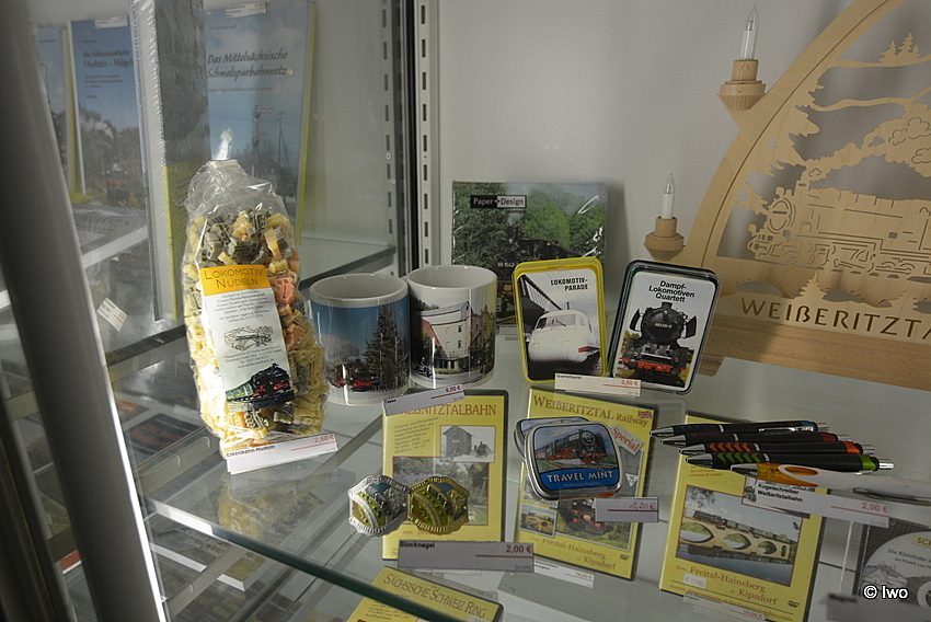 První zastávka na nádraží Freital-Hainsberg. Krásná a fungující stavba, kromě pokladny také skvěle vybavené infocentrum s poměrně velkým tematickým obchodem. I nudle do polévky ve tvaru parní lokomotivy se tu našly. My jsme tu ale hlavně kvůli Weißeritztalbahn. Jedna ze saských úzkokolejných drah, katastrofálně poničená povodněmi v roce 2002, postupně obnovovaná. Zatím je možno projet se po cca polovině původní vzdálenosti, „jen“ do Dippoldiswalde. Inu, není třeba všechno hned zbourat, zničit, vytrhat či nechat spadnout.