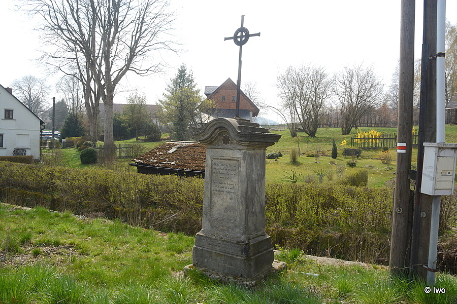 Kříž původně stál na severním konci obce vlevo od silnice do Lückendorfu a na nynější místo byl přesunut až v 90. letech 20. století.