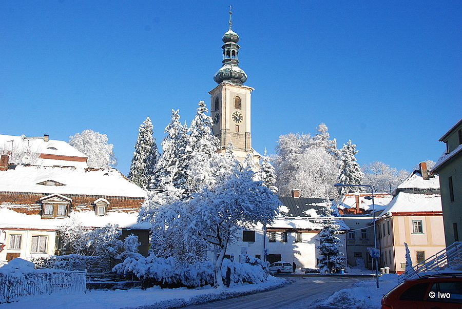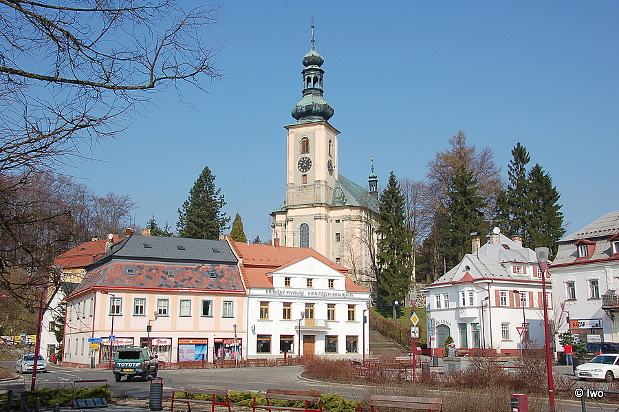 Ač stojí mimo Křinické náměstí v Krásné Lípě, přesto je jeho dominantou – kostel svaté Máří Magdalény.