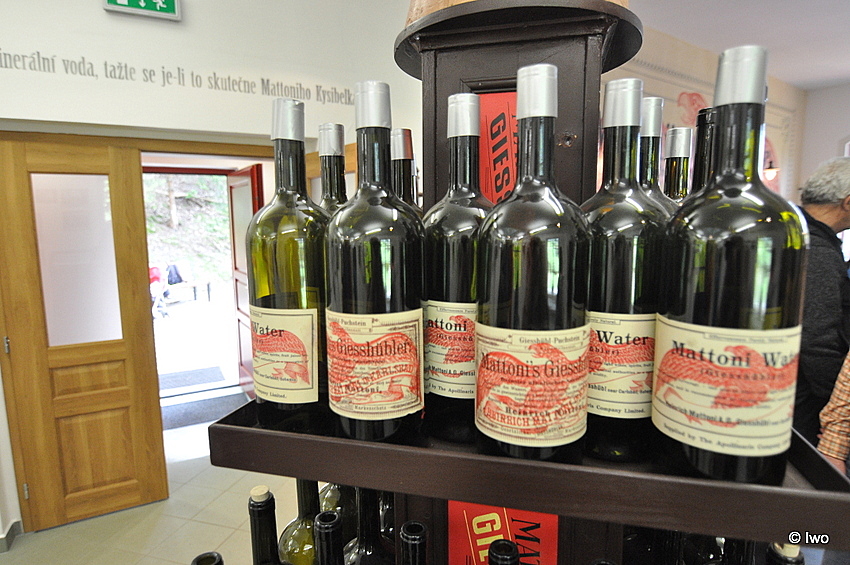 V přízemí je pokladna s prodejem upomínkových předmětů a občerstvení, expozice věnovaná Heinrichu Mattonimu, zakladateli tradice dnešní společnosti KMV a na historii samotné značky Mattoni. Nedaleká Mattoniho vila je v dezolátním stavu, v ní se ještě dlouho nebude vystavovat nic. Interiéry plynule přechází v „tovární“ prostor stáčírny, dnes pod širým nebem. Tady to pořád připomíná spíš zříceninu. Koleje, infotabule, vzadu skomírající pramen. Pokračování v patře – dokumenty, fotky, modely, historické artefakty a sálek s pár židlemi, kde se promítají dobové dokumenty.