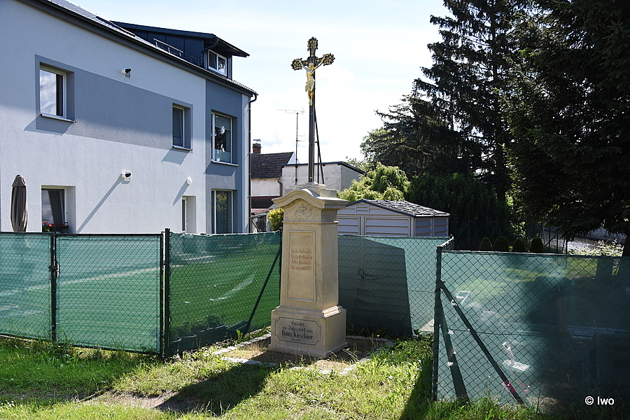 Skryt v zastrčené uličce Francouzská v Hrádku nad Nisou stojí Kirschnerův kříž.