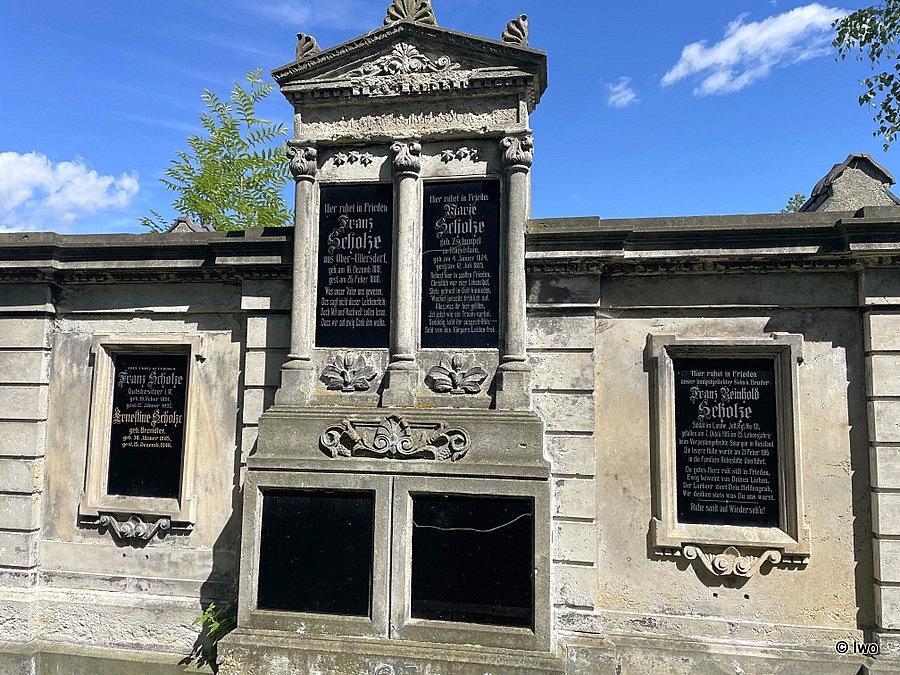 Na hřbitově v Hrádku nad Nisou je u severní ohradní zdi nedaleko od čelní strany rodinný hrob Scholzových, jehož součástí je náhrobek Franze Reinholda Scholze.