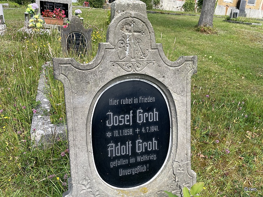 Na hřbitově v Chotyni v jeho horní části vlevo od středové cesty je umístěn kenotaf Adolfa Groha.
