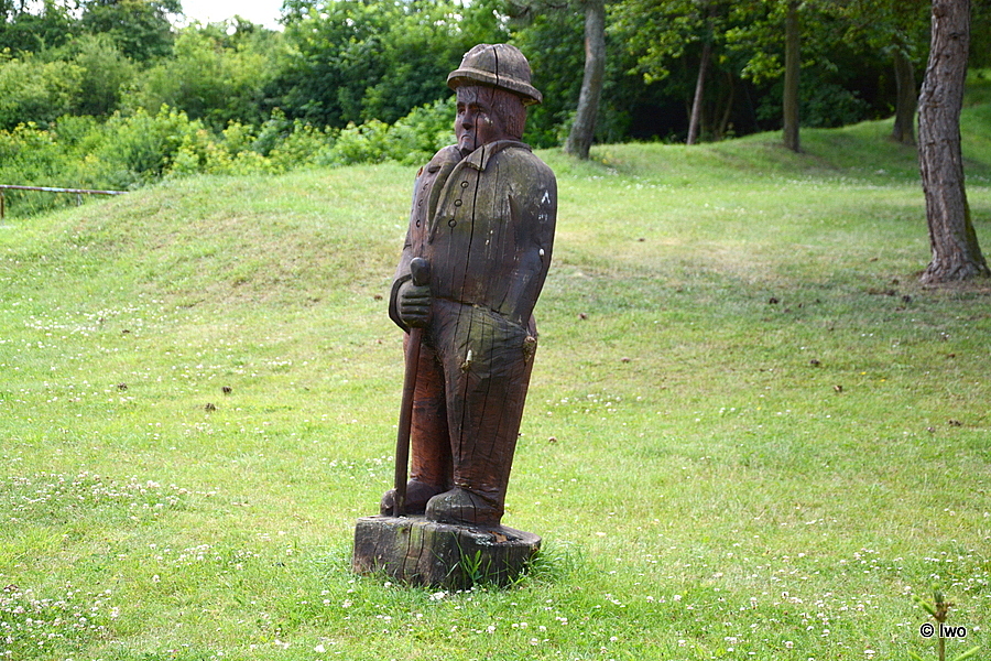 V malé obci Polerady nedaleko Mostu žije sice jen něco přes dvě stovky stálých obyvatel, ale místní jsou velmi aktivní, pořád se tu něco děje a je nač koukat. Třeba na řadu soch, vzniklých při dřevařských sympoziích. Na prostranství mezi místní silnicí a fotbalovým hřištěm stojí dvojice soch. Blíž k silnici je to stojící muž v buřince, opírající se o hůlku.