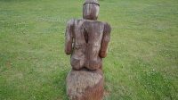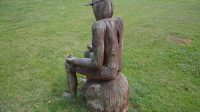 V malé obci Polerady nedaleko Mostu žije sice jen něco přes dvě stovky stálých obyvatel, ale místní jsou velmi aktivní, pořád se tu něco děje a je nač koukat. Třeba na řadu soch, vzniklých při dřevařských sympoziích. Na prostranství mezi místní silnicí a fotbalovým hřištěm stojí dvojice soch. Blíž ke hřišti je to sedící muž.