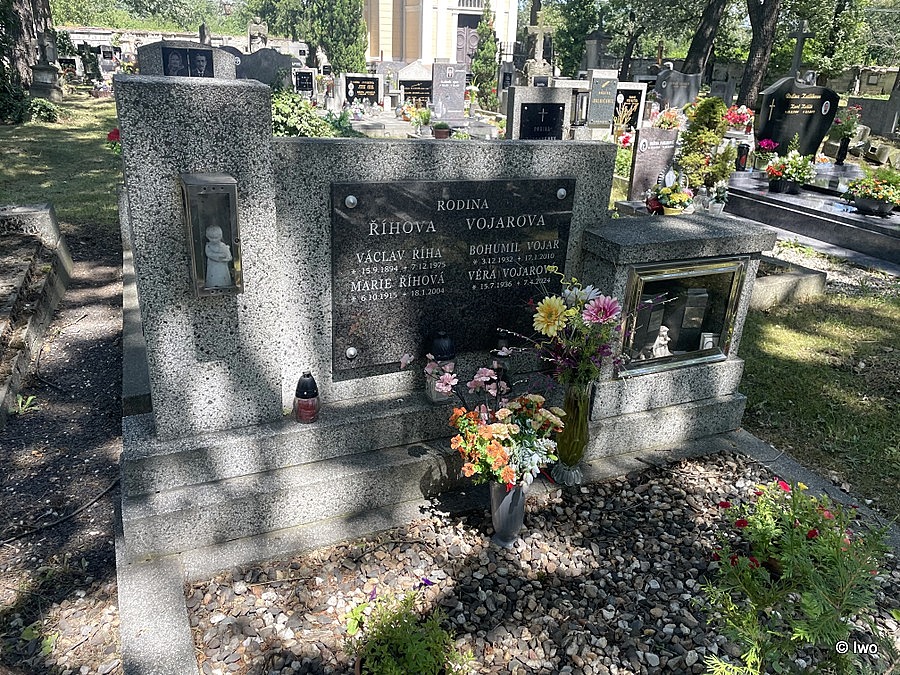 Ve střední části hřbitova v Postoloprtech leží hrob rodin Říhových a Vojarových.