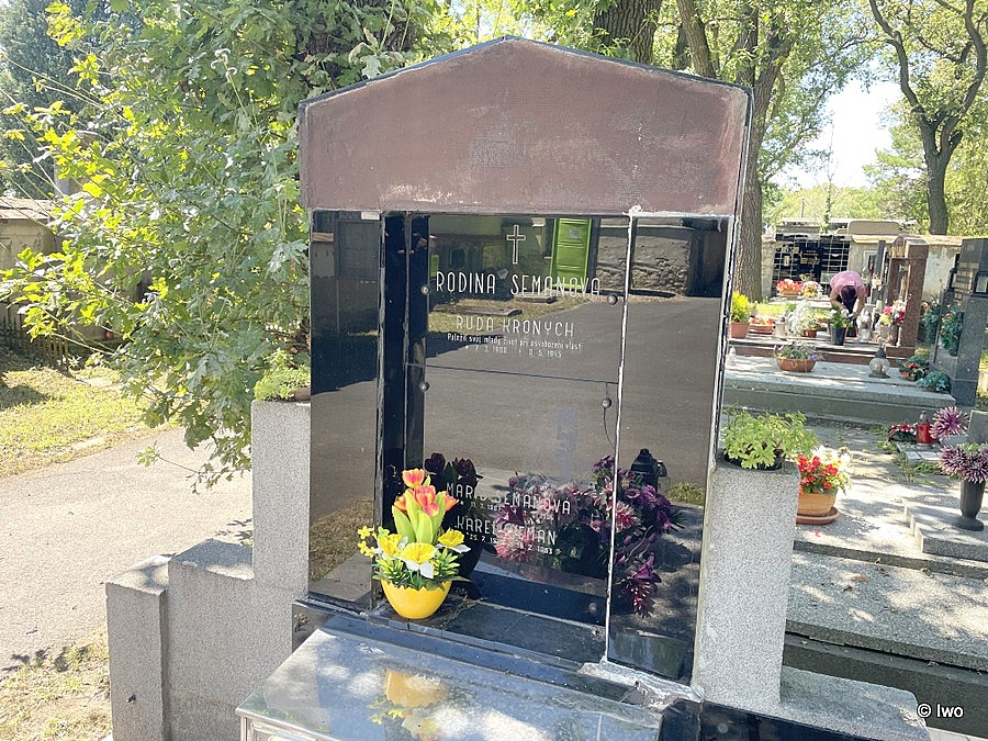 Na hřbitově v Postoloprtech takřka u vstupu je umístěn hrob rodiny Semanovy, jehož součástí je epitaf Rudy Kronycha.