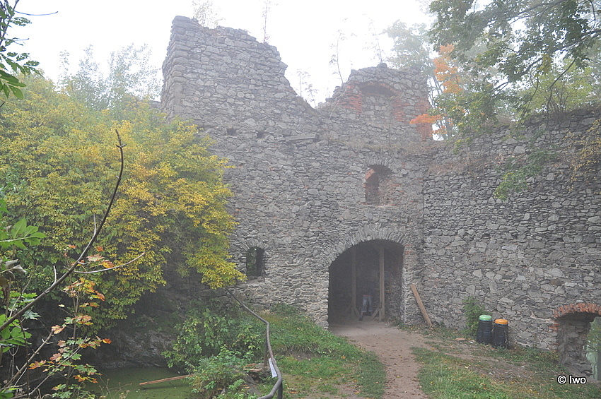 Za druhou branou, jednopatrovou vstupní věží s křížově zaklenutým průjezdem a menší vrátnicí na jižní straně, se nachází horní hrad. Z hranolové stavby zůstaly jen obvodové zdi s vnitřním i vnějším segmentovým obloukem vchodu. Těsně za bránou po pravé straně stával zděný přístavek, ve kterém bývala skryta ve skále vytesaná cisterna.