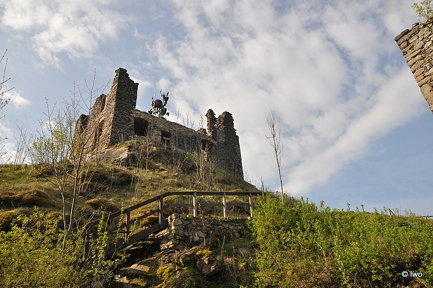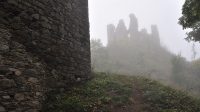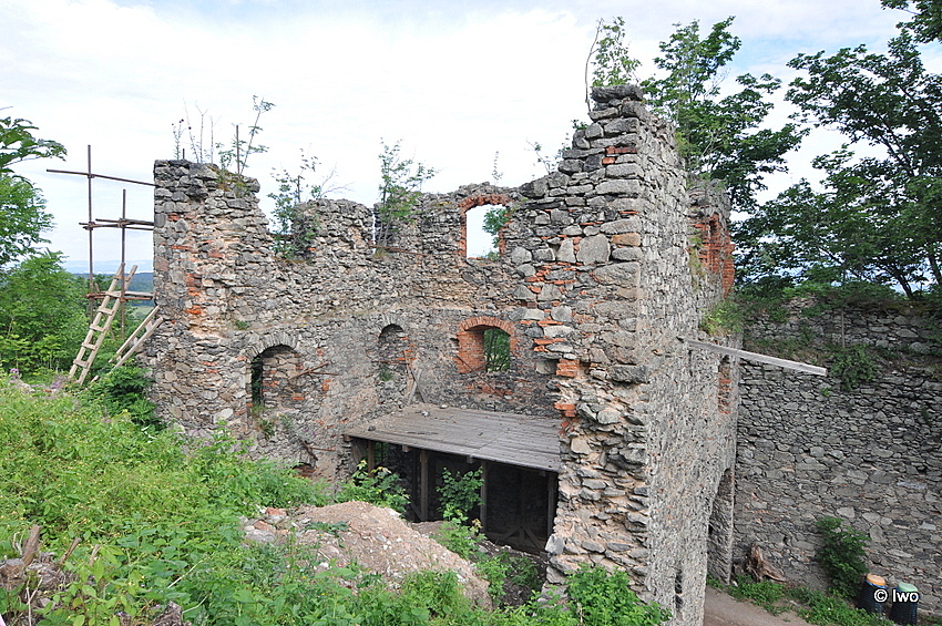 Je to zvláštní, dokud jsem to měl za rohem, byl jsem se na výrazném čedičovém tělese, čnícím v jinak dost ploché krajině, podívat jen párkrát. A za poslední tři roky, kdy to mám pěkných pár kilometrů daleko, jsem se byl rozhlížet z hradních zdí každoročně. Alespoň jsem měl jedinečnou možnost sledovat, jak tu postupují stavební práce – místní zřícenina totiž patří k těm šťastnějším. Je jednou z těch, na kterých probíhají zajišťovací (a částečně obnovovací) zásahy.