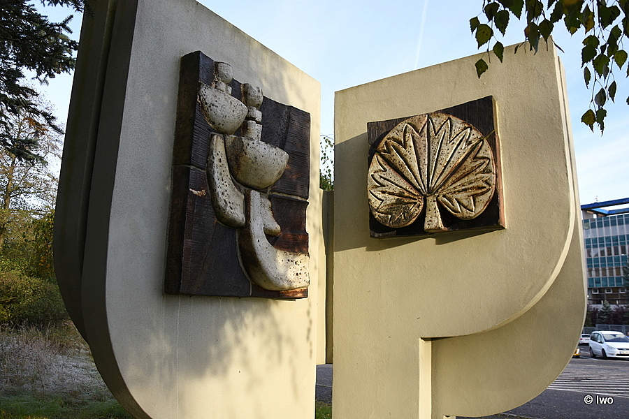 Betonová plastika se skládá ze čtyř částí. Z obou stran každého „listu“ jsou reliéfy z glazované keramiky se stylizovanými nejspíše sklářskými motivy.