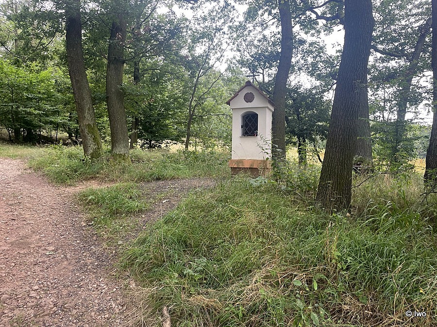 Dvě kaple vedle sebe, navíc oba pokusy zcela mimo skutečnou polohu kaple, která se nachází v zatáčce zeleně značené trasy u odbočky lesní neznačené pěšiny.