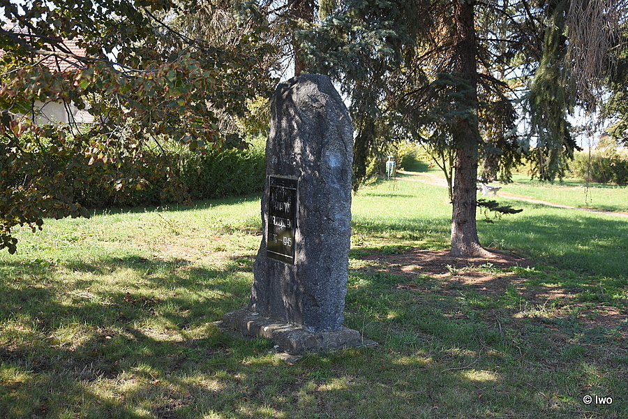 Pomník v podobě přírodní kamenné stély s nápisovou deskou a tlapatým křížem se původně nacházel v severní části bývalého hřbitova u kostela sv. Michaela. Po roce 1945 byl pomník přemístěn do parku při severním okraji obce a zbaven německých nápisů a symbolů, které nahradila nová deska s nápisem PAMÁTNÍK / OSVOBOZENÍ / 1939 – 1945.