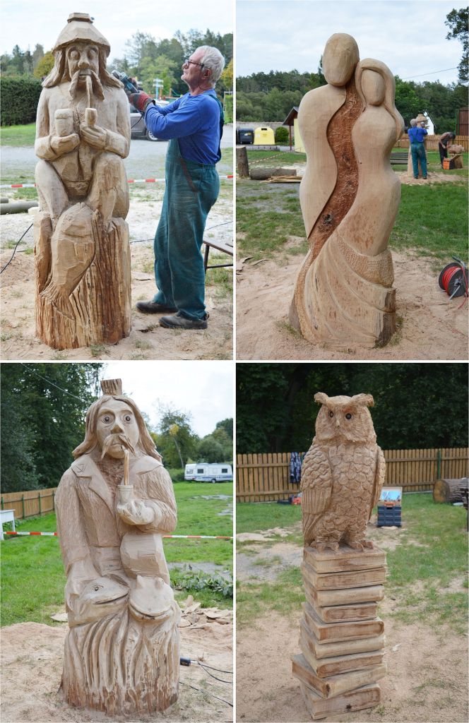 Stejně jako při loňském prvním ročníku Dubského dřevosochání byli hlavními aktéry vynikající dřevosochaři Marta Novotná, Vladimír Dědek, Jan Viktora a František Petranyi.