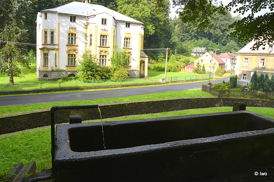 Vedle cesty směrem k dole podél vody vedoucí silnici stojí velká kamenná vana, do níž vodu přivádí trubka na jižní straně. Na boční stěně k cestě uprostřed obdélné pole s vykrojenými rohy, na něm iniciály WH a letopočet 1823.