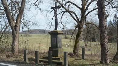 Kříž na místě zničeného kostela svatého Martina v Brtníkách