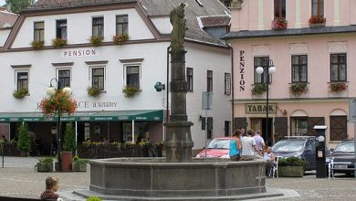 Na náměstí Míru v České Kamenici stojí renesanční pískovcová kašna.