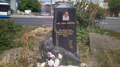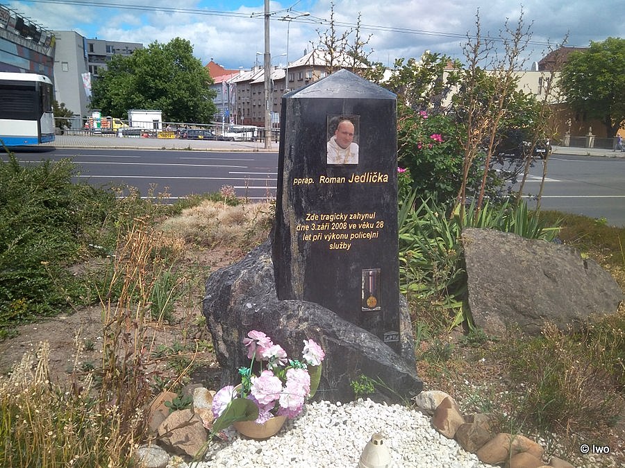 Pomník Romana Jedličky před OC Galerie pošta v Chomutově