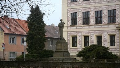 Socha Karla Havlíčka Borovského před gymnáziem v Duchcově
