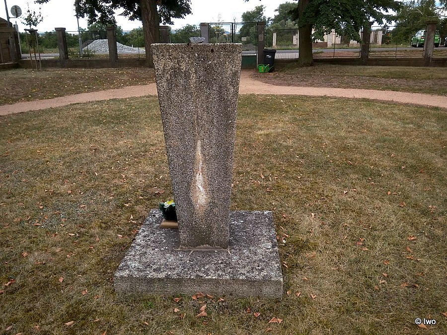 Kamenný sokl na nové části hřbitova v Lenešicích