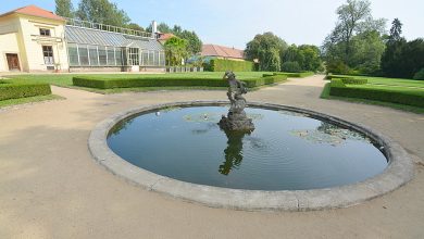 Kašna pod jižní terasní zdí v zámeckém parku v Libochovicích