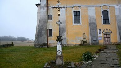 Kříž před kostelem Navštívení Panny Marie v Lobendavě