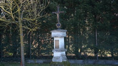 Poblíž rozcestí v jižní části obce Záluží stojí na trávníku u plotu kříž.
